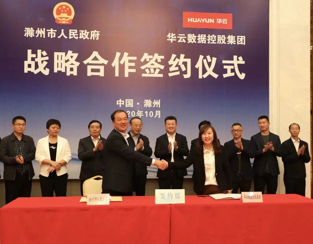 2020年10月13日,华云数据与滁州市人民政府签署战略合作协议。双方将深入践行新发展理念,充分发挥各自优势,在多领域开展全面合作,推动滁州市数字化产业快速发展,携手开启共赢新篇章。